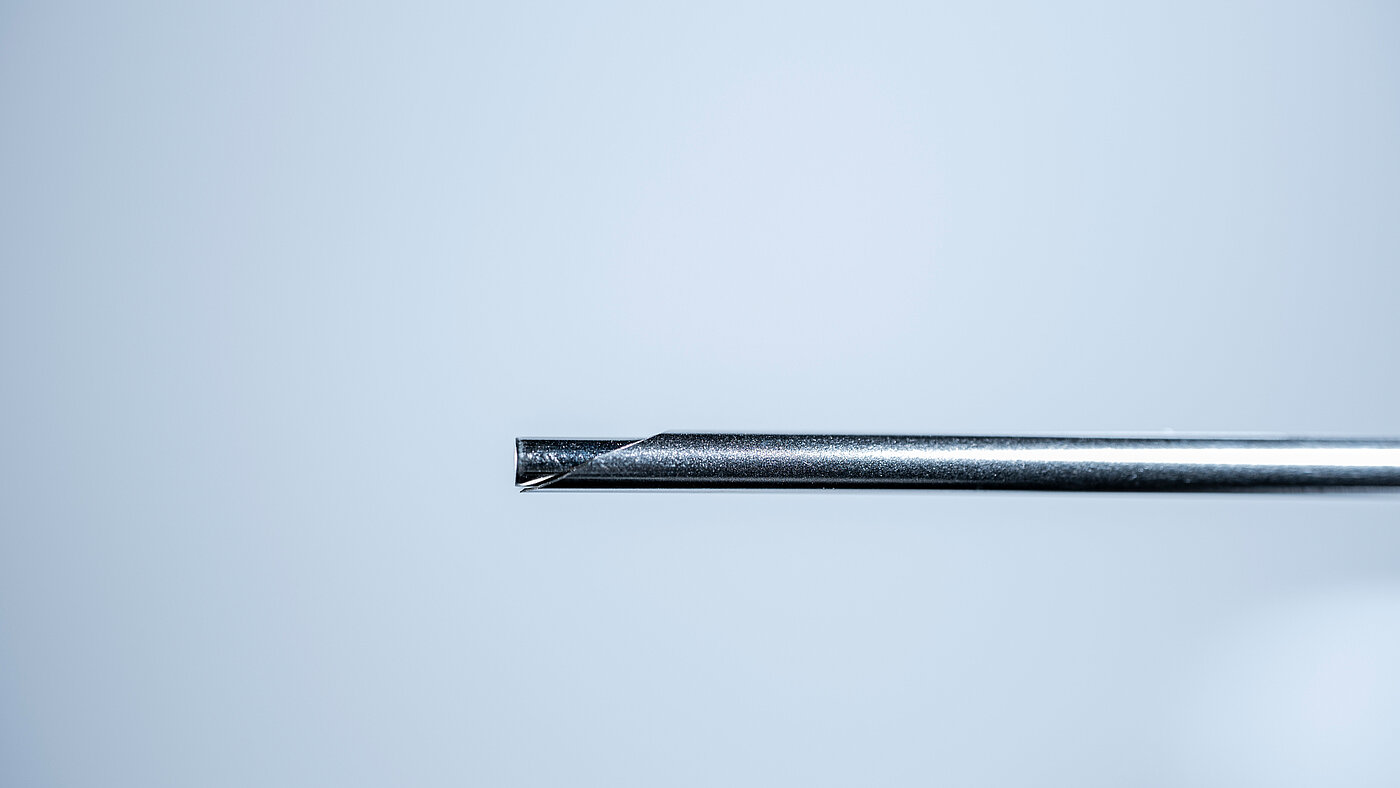 Together with our customer we developed a stainless steel canula with custom spacer and integrated titanium stylet. sfm was able to help facilitate the process from research and development to manufacturing to final product validation. Precise markings on the cannula, a very sharp bevel, and optimized tactile feel of the plastic molding provide the best possible application support.