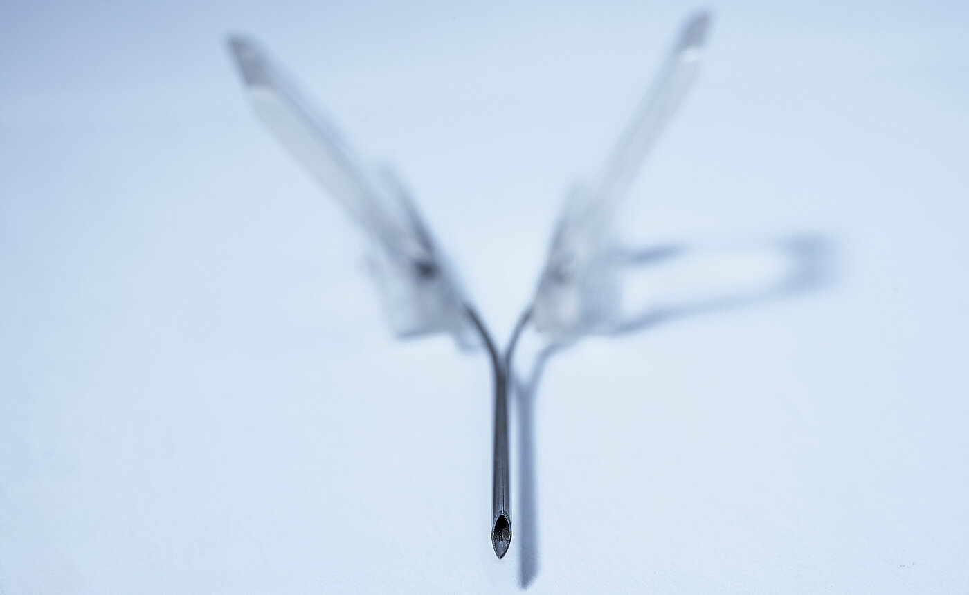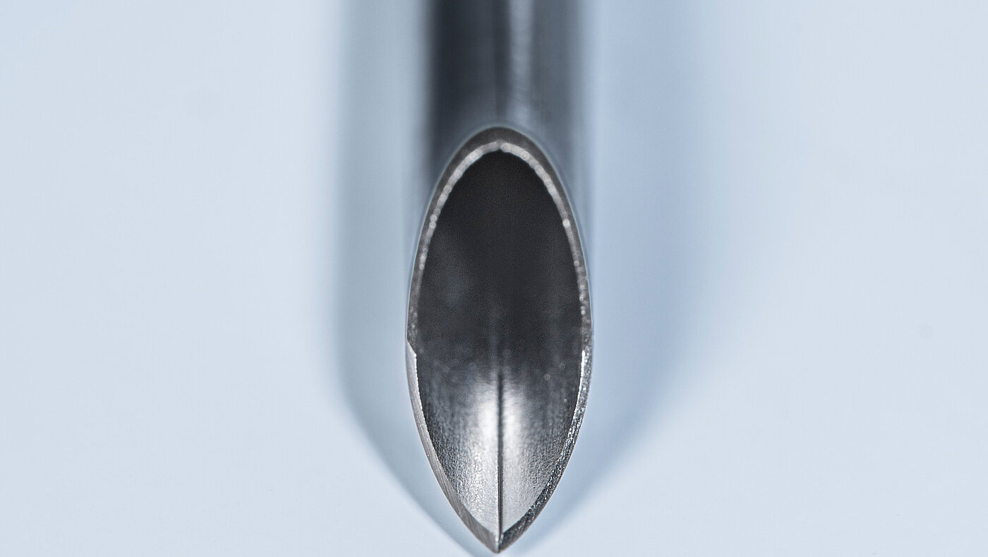 A safe and easy to split cannula was able to be developed thanks to our specially optimized manufacturing process. In addition to the predetermined breaking points, careful consideration was paid to the joining methods of the cannula to the plastic handle. For large diameter cannula, puncture forces were reduced by applying a special silicon coating to the cannula.